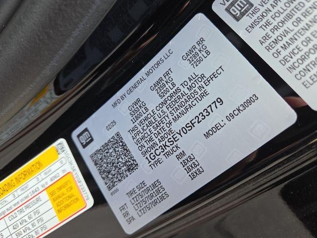 Let us help you find a Chevrolet that perfectly suits your needs. At Ricart Chevrolet, we're here to make your car-buying experience as exceptional as the vehicles we offer. This Vehicle has the following Equipment : Gooseneck/5th Wheel Prep Package (Chevytec Spray-On Black Bedliner), Preferred Equipment Group 1WT (170 Amp Alternator, 2-Speed Electronic Shift Transfer Case, 3.5" Diagonal Monochromatic Display DIC, Black Front Bumper, Black Mirror Caps, Black Rear Bumper, Bluetooth® For Phone, Chevrolet Connected Access Capable, Compass Located In Instrument Cluster, HD Rear Vision Camera, Locking Tailgate, Manual Tailgate Function w/No EZ Lift, Manual Tilt-Wheel Steering Column, OnStar Services Capable, Power Door Locks, Power Front Windows w/Driver Express Up/Down, Push Button Start, Remote Keyless Entry, Rubberized-Vinyl Floor Covering, Solar Absorbing Tinted Glass, Standard Tailgate, Steering Wheel Mounted Electronic Cruise Control, and Wi-Fi Hotspot Capable), Suspension Package, WT Convenience Package (Deep-Tinted Glass, Electric Rear-Window Defogger, and EZ Lift Power Lock & Release Tailgate), 10-Speed Automatic, 4WD, Jet Black Vinyl, 120-Volt Bed Mounted Power Outlet, 120-Volt Interior Power Outlet, 2 Speakers, 2-Speaker Audio System Feature, 220 Amp Alternator, 3.42 Rear Axle Ratio, 3.73 Rear Axle Ratio, 4-Way Manual Driver Seat Adjuster, 4-Way Manual Passenger Seat Adjuster, 4-Wheel Disc Brakes, ABS brakes, Air Conditioning, AM/FM radio, Apple CarPlay/Android Auto, Auto High-beam Headlights, Auto-Dimming Inside Rear-View Mirror, Black Work Step (LPO), Brake assist, Compass, Delay-off headlights, Deleted Mobile Service Plus, Driver door bin, Dual front impact airbags, Dual front side impact airbags, Durabed Pickup Bed, Electronic Stability Control, Engine Block Heater, Exhaust Brake, Front 40/20/40 Split-Bench Seats w/Lockable Storage, Front anti-roll bar, Front Center Armrest w/Storage, Front reading lights, Front wheel independent suspension, Fully automatic headlights, Heated door mirrors, Heavy-Duty 80 Amp-Hr Battery, Illuminated entry, Low tire pressure warning, Multi-Flex Tailgate, Occupant sensing airbag, Outside temperature display, Overhead airbag, Overhead console, Panic alarm, Passenger door bin, Passenger vanity mirror, Perimeter Lighting, Power door mirrors, Power steering, Power windows, Power-Adjustable Outside Mirrors, Premium audio system: Chevrolet Infotainment 3, Radio: Chevrolet Infotainment 3 System, Rear step bumper, Remote keyless entry, Speed control, Tachometer, Tilt steering wheel, Traction control, Trip computer, Turn signal indicator mirrors, Variably intermittent wipers, Vinyl Seat Trim, Voltmeter, and Winter Grille Cover. Black 2025 Chevrolet Silverado 3500HD Work Truck 2D Standard Cab Duramax 6.6L V8 Turbodiesel 10-Speed Automatic 4WD