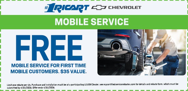 By clicking this box, I agree to receive in-person or automated telemarketing calls and texts from Ricart Chevrolet at the number I entered. I understand that my consent is not required for purchase. By providing your telephone number and email address, (1) you understand that using an electronic signature to express written consent to receive emails, telephone calls, text messages, artificial or pre-recorded messages from or on behalf of Ricart Automotive, its affiliates, and/or any third-party partners (or service provider partners on its behalf), (2) you understand that you may be contacted at the email address and/or telephone number you provided, including your wireless phone number (if provided) utilizing an automated telephone dialing system or robocall, even if you are on a government do-not-call registry, and (3) you agree to this website's