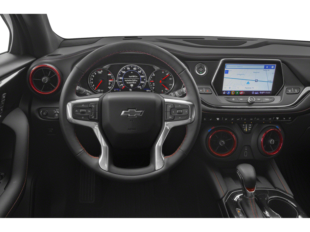 Safety and technology are also at the forefront of this Blazer RS. The Driver Confidence II Package equips the vehicle with advanced driver-assist features, including Adaptive Cruise Control, Enhanced Automatic Emergency Braking, and HD Surround Vision for enhanced awareness and peace of mind on the road. The Rear Camera Mirror and Wireless Charging further enhance the vehicle's convenience and connectivity.